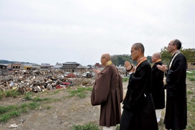 半田孝淳第二百五十六世天台座主猊下は、五月十一日に東日本大震災で甚大な被害を受けた宮城県気仙沼市に赴かれ、観音寺(鮎貝宗城住職)を会場に、東日本大震災で犠牲になられた全ての人々に対する慰霊法要を厳修された。座主猊下が被災地に赴かれて慰霊法要を修されるのは始めて。同法要によって、天台宗は、これからの復興に向け全力で取り組む姿勢を改めて内外に示した。