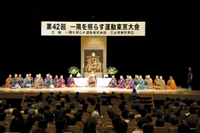同運動東京教区本部(杜多徳雄本部長)の「第四十二回一隅を照らす運動東京大会」は、台東区・浅草公会堂において開催、約千名の参加者を数えた。同大会には、阿純孝宗務総長、武覚超延暦寺執行福惠善高同運動総本部長らが来賓として出席。開会にあたり第一部として、神田秀順輪王寺門跡・寛永寺住職を大導師として法要が営まれた後、杜多同運動東京本部長(東京教区宗務所長)が「東日本大震災の復興も遅々として進まず、福島の原発事故の収束もまだまだの状況。これからも息の長い物心両面の支援が必要となる。この運動を推進する我々も尽力していきたい」と主催者を代表して挨拶。また、長年に亘り同運動に携わってきた会員の表彰もなされた。