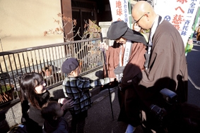 毎年恒例となっている「天台宗全国一斉托鉢」が昨年十二月一日に行われた。今回で二十七回を数えるが、十二月の最初の日に行われることで、今では「師走を告げる風物詩」としてよく知られている。この日は、全国二十五カ所でも実施されたが、十二月の一斉托鉢期間中には、全国の六十カ所で行われる。寄せられた浄財は、NHKの「歳末たすけあい」や、各地の社会福祉協議会、一隅を照らす運動総本部の「地球救援募金」などを通じて、国内外の恵まれない人々に贈られた。