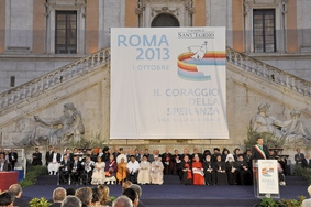 一日夕刻には、各宗教、宗派で平和の祈りの法要が執り行われた後、ローマの中心地のカンピドリオ広場でファイナルセレモニーが行われ、平和宣言が採択された。