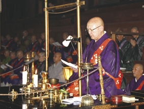 木ノ下宗務総長は、今回の平和祈願法要を営んだ主旨について法則(ほっそく)で