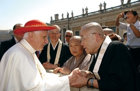 またローマ教皇ヨハネ・パウロⅡ世聖下は、一九八一年に来日した折「宗教協力には、日本の偉大なる教師・最澄の言葉を用いるならば『己を忘れて他を利するは慈悲の極みなり』の精神が最も大切である」と語り、日本の宗教者を感激させた。この教皇の思いは一九八六年、アッシジにおいて世界宗教者平和祈願集会の開催に結実する。