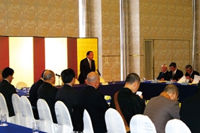 比叡山宗教サミットを開催するために日本宗教界が結集して「日本宗教代表者会議」が結成され、サミット十周年記念に続き、二十周年記念に向け、今回も代表者会議が結成された。発会式は、京都市内のホテルで開かれ、約五十名の教団関係者が出席した。